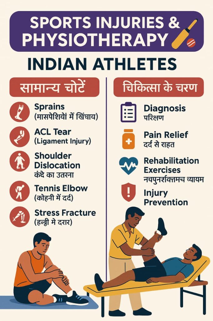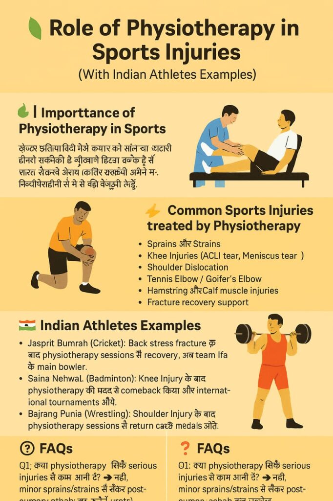 Sports injuries inevitable हैं, लेकिन physiotherapy recovery और prevention दोनों में key role निभाती है। भारतीय athletes इसका सबसे बड़ा example हैं। Regular physiotherapy sessions से न सिर्फ़ खेलों में performance improve होती है बल्कि long career भी sustain होता है।
